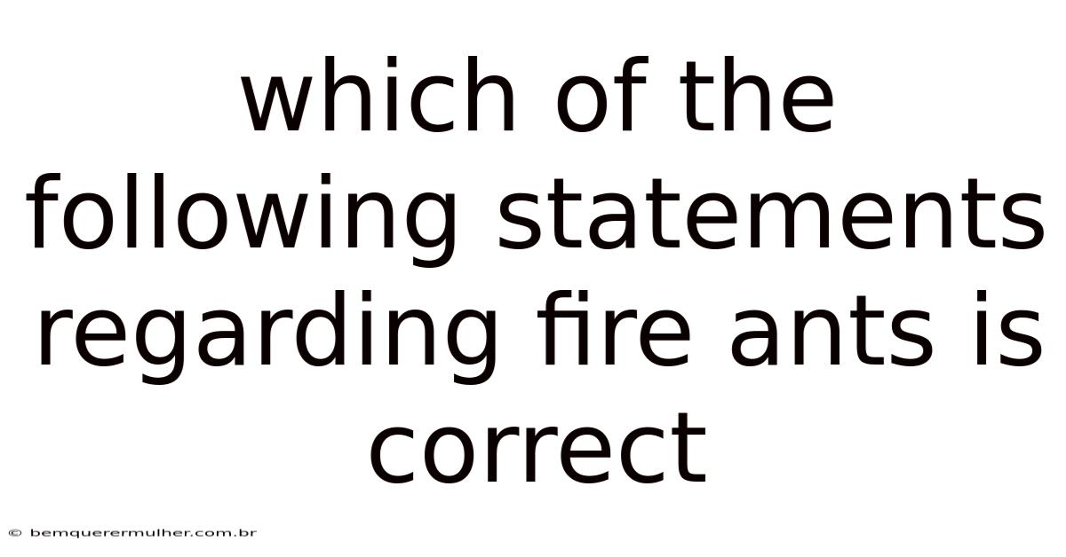 Fire ants (Solenopsis spp.As a result, many educational resources present multiple statements about fire ants, asking readers to pick the correct one. Consider this: their ability to thrive in diverse habitats—from sandy lawns to agricultural fields—has sparked numerous public‑health campaigns and scientific studies. ) are not just another backyard nuisance; they are invasive predators that can alter ecosystems, damage agriculture, and cause costly medical treatments. By dissecting each claim, we can separate myth from reality and provide a reliable reference for students, homeowners, and professionals alike.