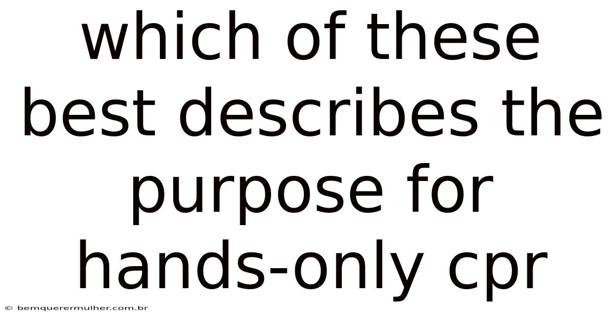 Which of These Best Describes the Purpose for Hands-Only CPR: A Complete Guide