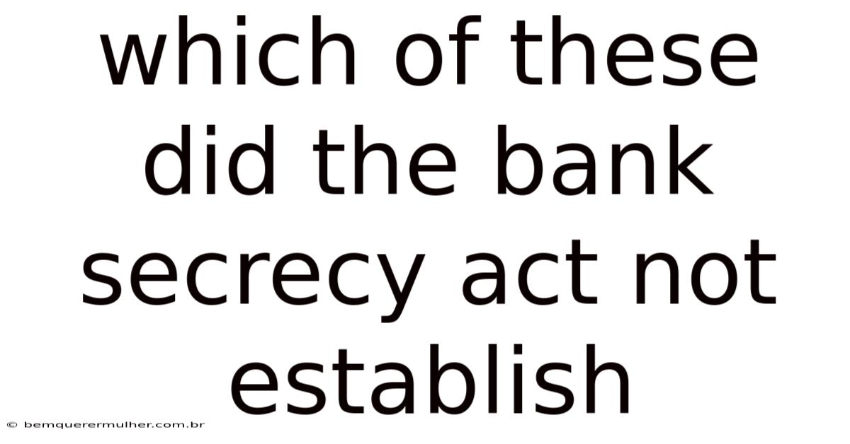 The Bank Secrecy Act (BSA) remains one of the most foundational pieces of financial legislation in the United States, yet students, compliance professionals, and finance exam candidates frequently encounter a tricky question: which of these did the Bank Secrecy Act not establish? Understanding the precise scope of this 1970 law requires separating its original statutory provisions from later regulatory amendments, modern anti-money laundering frameworks, and entirely unrelated financial institutions. This guide breaks down what the BSA truly created, clarifies the most frequently confused policies, and explains how contemporary financial compliance evolved from its original foundation And that's really what it comes down to. And it works..