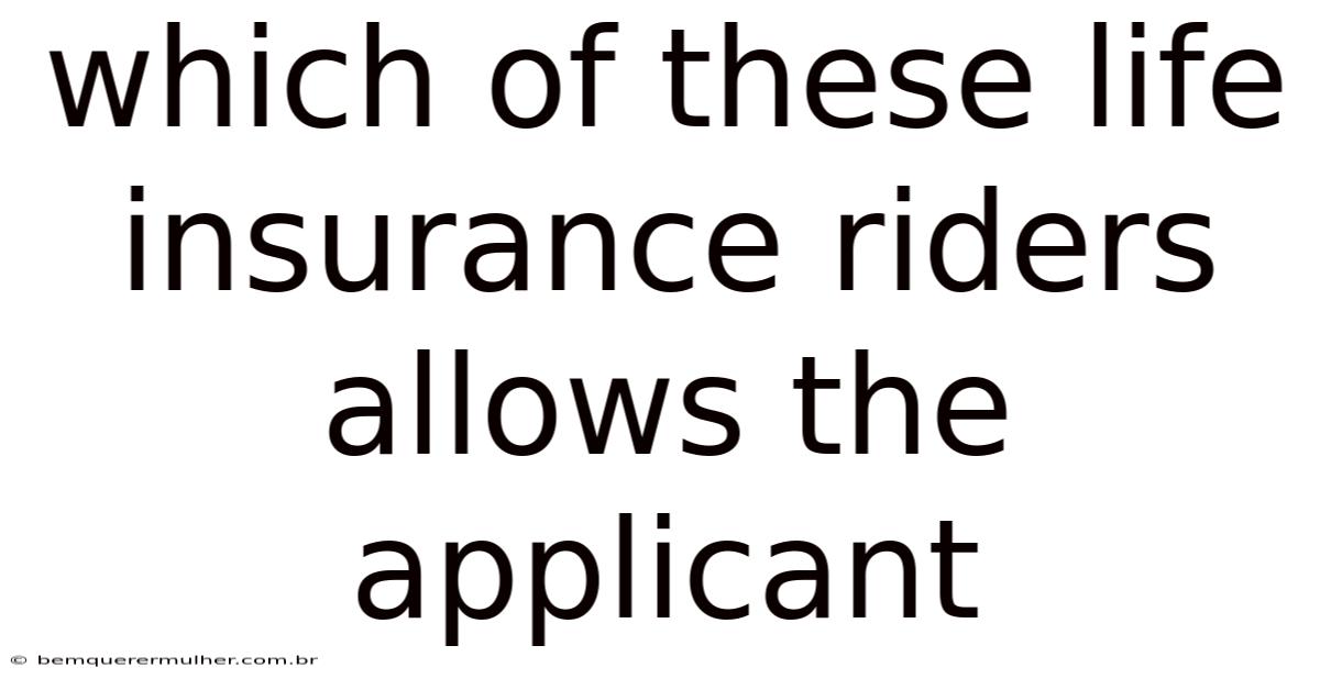 When it comes to life insurance riders, they are additional features that can be added to a policy to provide extra coverage or benefits. These riders are designed to address specific needs, such as protecting dependents, covering medical expenses, or ensuring financial security in case of certain life events. Consider this: one common question that arises is: *Which of these life insurance riders allows the applicant to tailor their coverage according to their personal circumstances? * The answer lies in understanding the types of riders available and how they fit into your overall insurance strategy Simple as that..