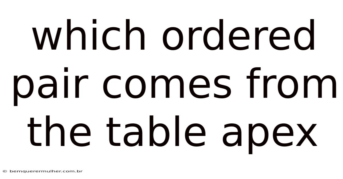 Understanding Ordered Pairs and Table Structure An ordered pair (x, y) represents a specific point on a coordinate plane, where x is the horizontal coordinate and y is the vertical coordinate. When data is organized in a table, each row usually represents a single data point, with columns representing different variables or measurements. As an example, a table might have columns labeled "Height (cm)" and "Weight (kg)", with each row containing a unique individual's measurements. The apex in this context could be the row containing the highest weight value That alone is useful..
