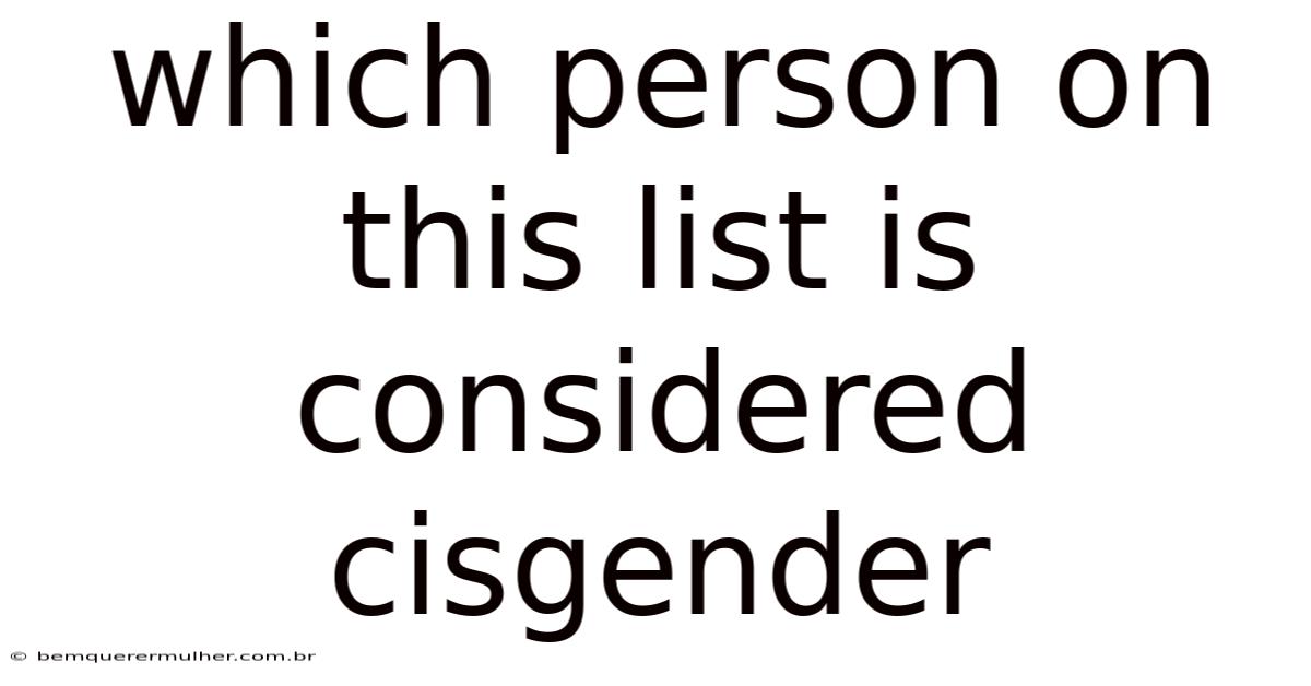 The term cisgender has become a standard part of modern vocabulary in education, healthcare, and social sciences, yet it is frequently misunderstood or misapplied. At its core, the word describes individuals whose internal sense of gender aligns with the sex they were assigned at birth. Day to day, the prefix cis- originates from Latin, meaning “on the same side as,” and was intentionally chosen to create linguistic symmetry with transgender, which uses the prefix trans- (“across from”). This terminology emerged in academic and advocacy spaces during the 1990s to provide a neutral, precise descriptor for the majority of the population without positioning any identity as a “default” or “standard.” When educators or assessments ask which person on this list is considered cisgender, they are typically testing your ability to apply this definition accurately while recognizing that gender identity is personal, self-determined, and not visible through outward appearance alone.