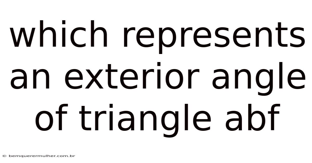 When studying geometry, understanding the properties of triangles is fundamental. Day to day, one such property involves the concept of an exterior angle, which plays a critical role in solving problems related to angles and their relationships. This leads to in the context of triangle ABF, identifying which angle represents an exterior angle requires a clear grasp of how exterior angles are formed and their mathematical significance. This article will explore the definition, identification, and properties of exterior angles in triangle ABF, providing a comprehensive explanation for readers seeking to deepen their understanding of geometric principles.
