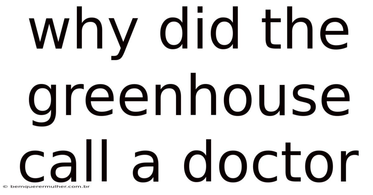 At first glance, a greenhouse is a structure made of glass or plastic that traps sunlight and heat to create an ideal growing environment. It does not possess a nervous system, so it cannot literally call a doctor. On the flip side, the phrase often appears in educational contexts or jokes where the greenhouse is personified to illustrate a problem—such as overheating, pest infestation, or nutrient imbalance—that requires intervention, much like a patient needing a physician But it adds up..