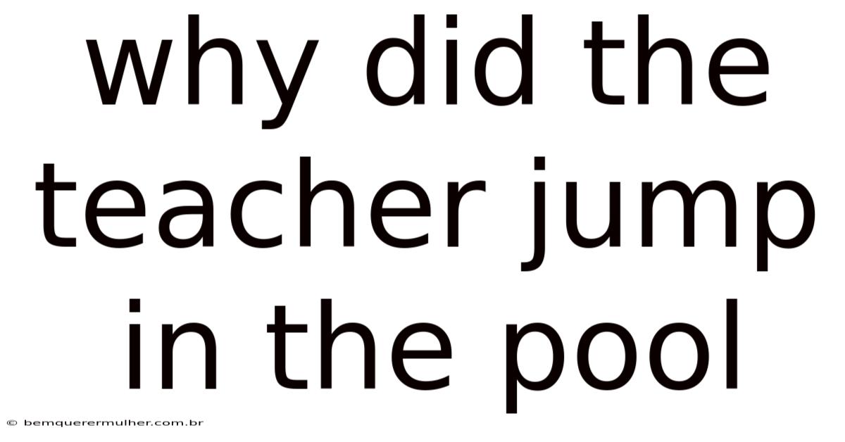 A sudden splash in a classroom pool can feel like a scene from a comedy movie, but behind the humor lies a deliberate pedagogical choice. Teachers sometimes use physical actions—like jumping into a pool—to break monotony, engage students, or demonstrate a concept in a visceral way. Understanding why teachers do this reveals a broader trend in modern education: the shift from passive instruction to immersive, student-centered learning Nothing fancy..