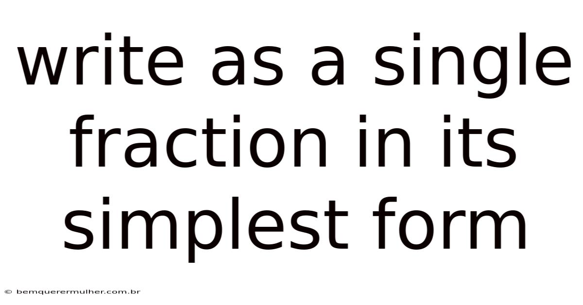 The ability to write expressions as a single fraction in its simplest form is a cornerstone of mathematical literacy. This skill transcends basic arithmetic, forming the essential foundation for algebra, calculus, and real-world problem-solving in fields like engineering, finance, and data science. Because of that, at its core, the process involves two critical actions: combining multiple fractional terms into one unified expression and then reducing that fraction to its most elementary state, where the numerator and denominator share no common factors other than 1. Mastering this technique ensures accuracy in calculations, simplifies complex equations, and provides a standardized, universally understood format for representing rational quantities. Whether you are adding recipe measurements, comparing statistical ratios, or solving advanced polynomial equations, the principle remains the same: consolidate and simplify The details matter here..