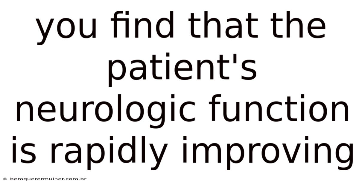 Several factors can contribute to a patient's rapid neurological improvement. These include: