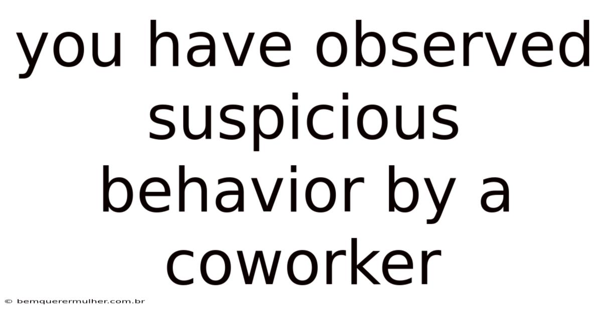 You Have Observed Suspicious Behavior By A Coworker