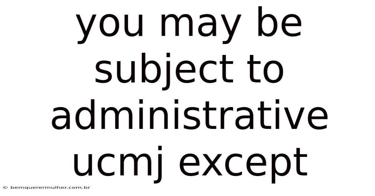 The Uniform Code of Military Justice (UCMJ) is the legal framework that governs the conduct of military personnel in the United States. While the UCMJ is often associated with court-martial proceedings for serious offenses, it also encompasses administrative actions that can affect a service member’s status, privileges, or career. Even so, not all actions fall under the administrative UCMJ, and there are specific exceptions that determine when a service member may or may not be subject to these procedures. Understanding these exceptions is critical for military personnel to handle their rights and responsibilities effectively Small thing, real impact. But it adds up..