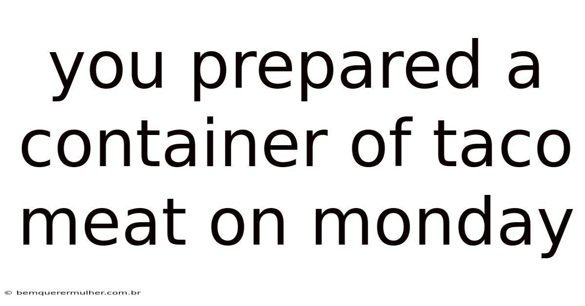 The simple act of you prepared a container of taco meat on Monday is far more than a routine kitchen task; it is the foundational step in a week of efficient cooking, family satisfaction, and culinary creativity. By dedicating a small window of time early in the week to prepare this essential base, you get to a world of convenience, allowing you to assemble diverse meals with minimal effort. So this seemingly mundane chore encapsulates the principles of meal prep, food safety, and flavor development that transform a busy weeknight into a stress-free dining experience. This article explores the entire lifecycle of that container of meat, from the initial shopping list to the final delicious bite, providing a complete walkthrough to maximizing its potential throughout the week Not complicated — just consistent..