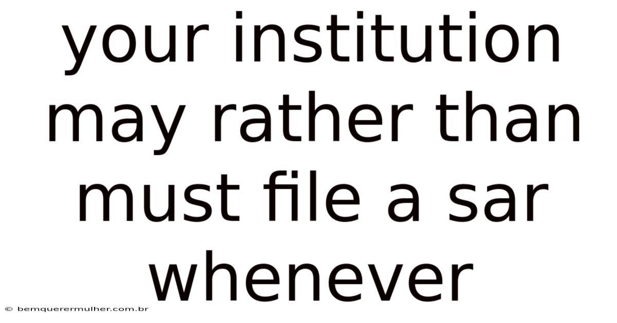 A Suspicious Activity Report (SAR) is a critical tool used by financial institutions to report potentially suspicious transactions to the Financial Crimes Enforcement Network (FinCEN). While many institutions operate under the assumption that they must file a SAR whenever they detect suspicious activity, the reality is more nuanced. Day to day, the phrase "your institution may rather than must file a SAR whenever" highlights the discretionary power that institutions have in certain situations. This article explores the circumstances under which filing a SAR is discretionary, the implications of this flexibility, and best practices for institutions navigating these decisions Simple, but easy to overlook. That alone is useful..
